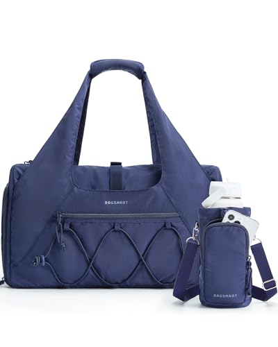 BAGSMART Gym Bag with Shoe Compartment & Wet Pocket, 25L Sport Duffle for Yoga, Womens Weekend Travel Bag, with Water Bottles Bag, Navy Blue