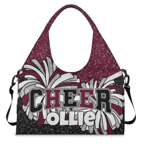 BAGHONEY Custom Sports Bag Dance Bags for Girls Womens Personalised Weekend Bag, Glitter Black Maroon Cheer Workout Gymnastics Travel Overnight Bag with Shoes Compartment Yoga Mat Gear Bags