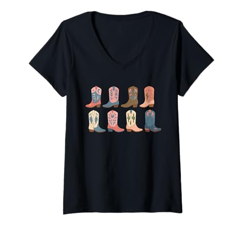 Womens Western Cowgirl Boots Graphic for Country Concerts and Rodeo V-Neck T-Shirt