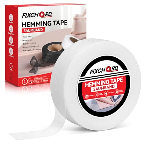 FIXCHORD Hemming Tape, 30m*30mm Wonder Web Hemming Tape, No Sewing Iron on Tape, Iron on Hemming Tape, Extra Strong Fusible Fabric Tape for Clothes Curtains Ironing and Bonding, DIY Crafts, White