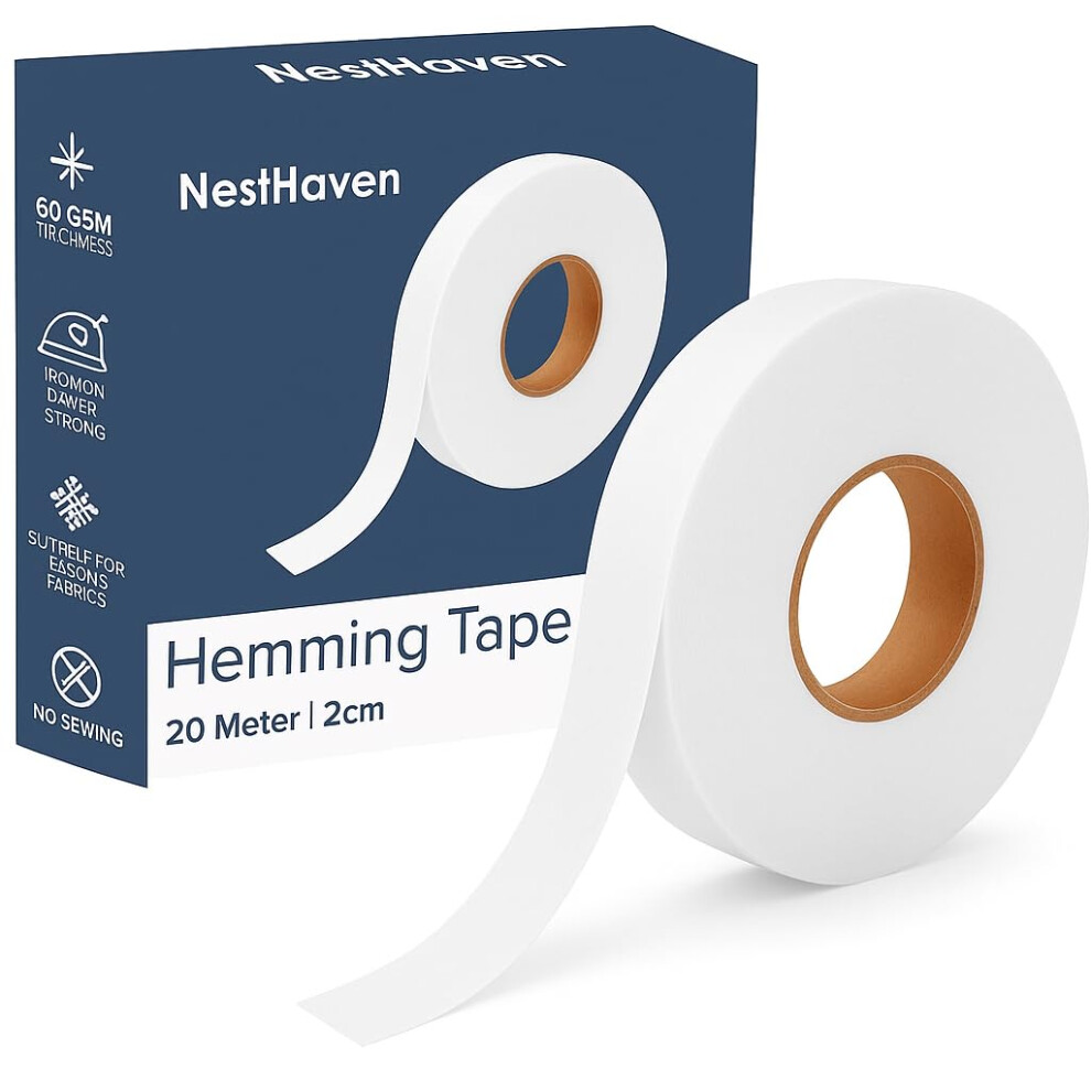 NestHaven® Wonder Web Hemming Tape 20 Metres, Extra Strong, Iron On Hem Tape, Perfect Hemming Tape for Clothes, Ironing Adhesive Curtains,trousers, No Sew Hem Tape