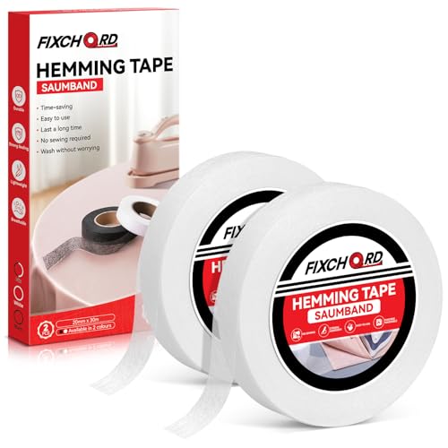 FIXCHORD Hemming Tape, 2PCS 30m*20mm Wonder Web Hemming Tape, No Sewing Iron on Tape, Iron on Hemming Tape, Extra Strong Fusible Fabric Tape for Clothes Curtains Ironing and Bonding, DIY Crafts, White