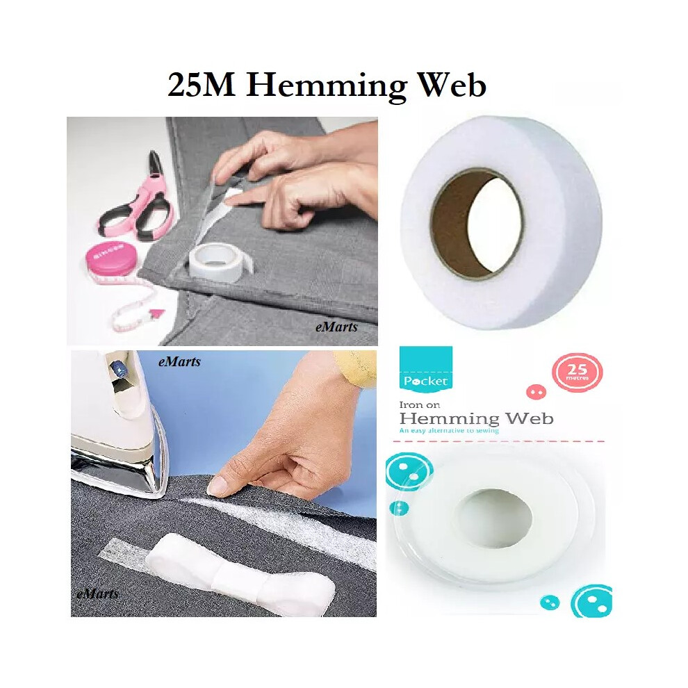 25 x Meters Hemming Web Large Roll Wonder Iron On Tape Sewing Bonding Long Badges School Work Trouser Webbing Craft Master Tailor Home Office Wh