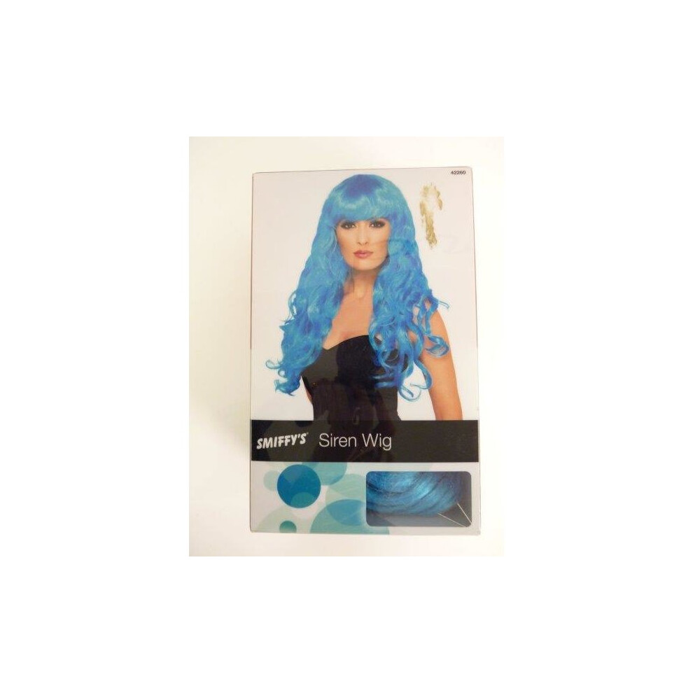 Adult's Blue Long Siren Wig - wig siren fancy dress womens glamour long wigs curly girls 80s outfit wonder woman blue ladies