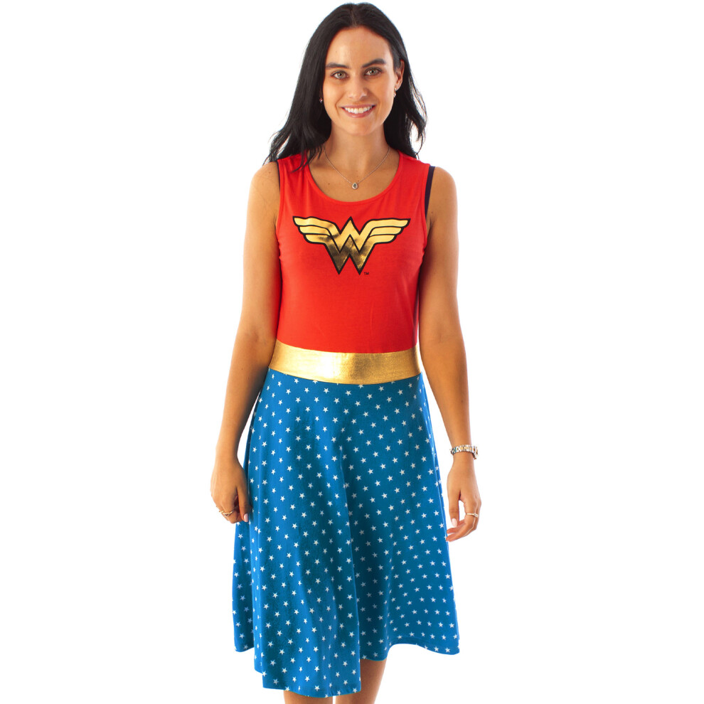 DC Comics Wonder Woman Dress For Women Cosplay Dress Red OR Blue Options | Ladies Fancy Dress Party Outfit Gifts S