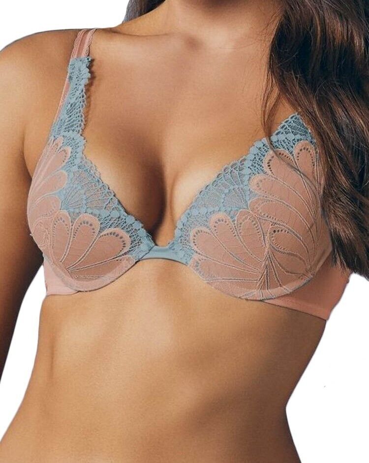 Wonderbra Refined Glamour Bra Size 32FF Caramel Blue Padded Push Up Plunge W02LN