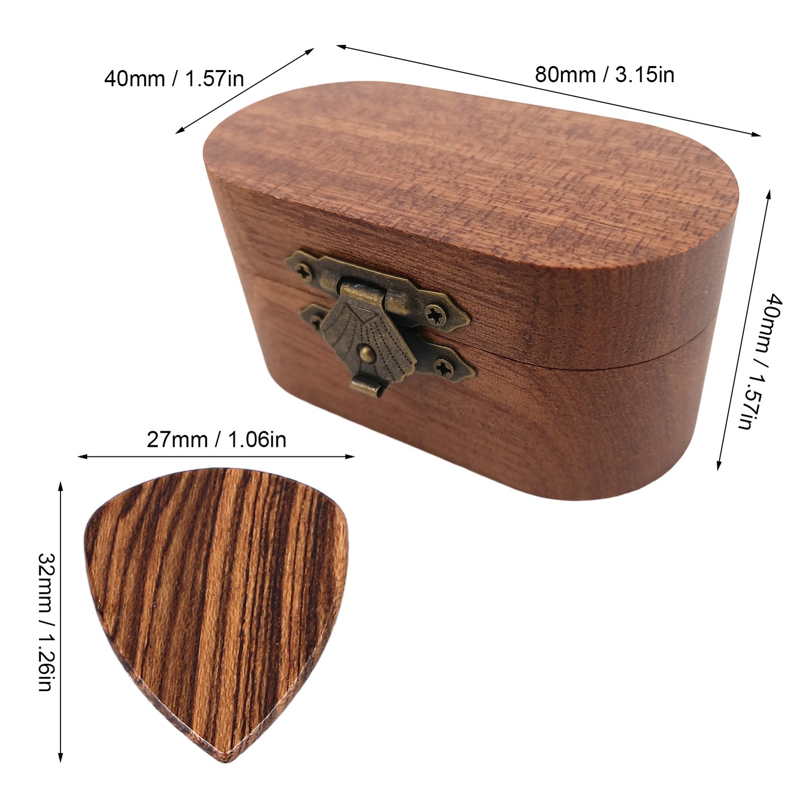 Guitar Picks Box Wooden Case Portable Holder Storage Container Solid Wood Ac ECM