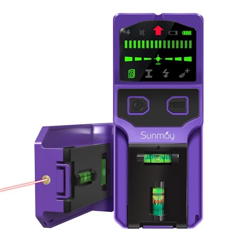 SUNMAY Stud Finder Wall Scanner - 7 in 1 Stud Detector Center Finding for Wood Metal AC Wire Joist Pipe Detection, Electronic Stud Sensor with Laser Level and LCD Display