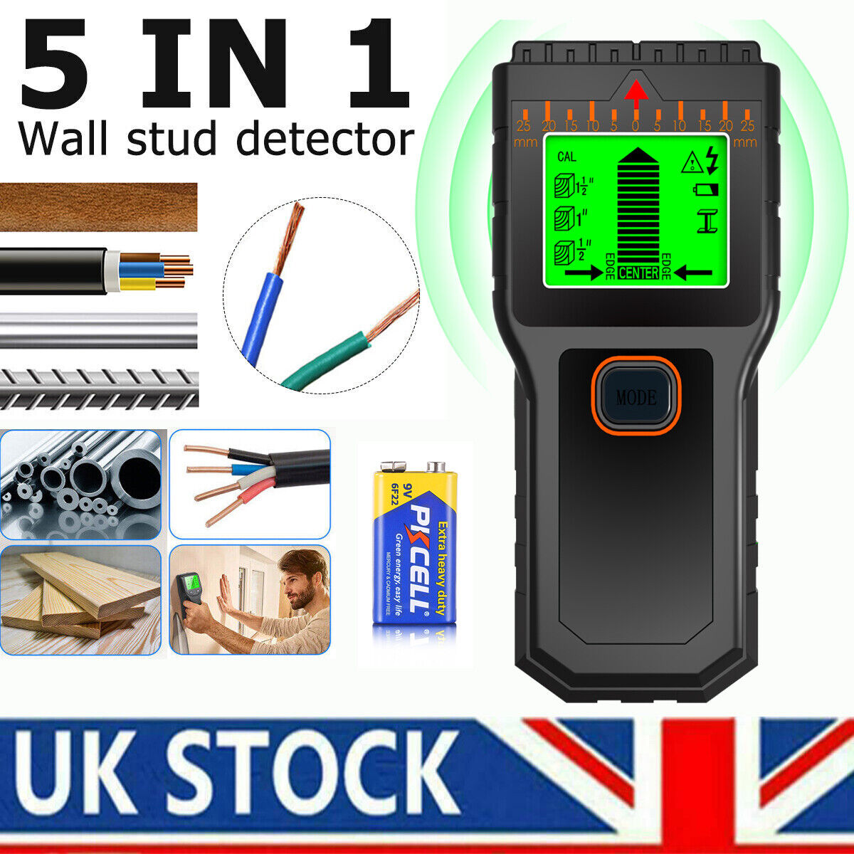 5-in-1 Studs Metal Detector Wall Scanner AC Wood Cable Wires Depth Tracker4619