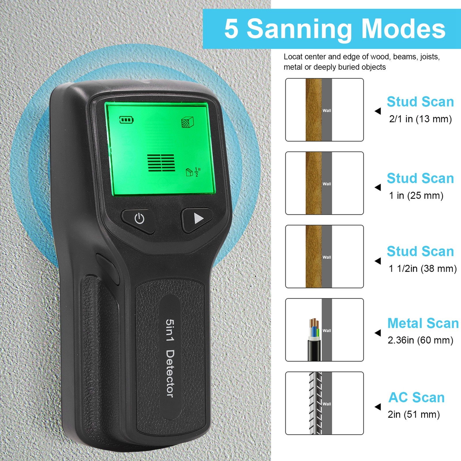 "5-in-1 USB Rechargeable Wall Scanner -02 for Wood, Metal, AC Wires with Precision Marking Hole"