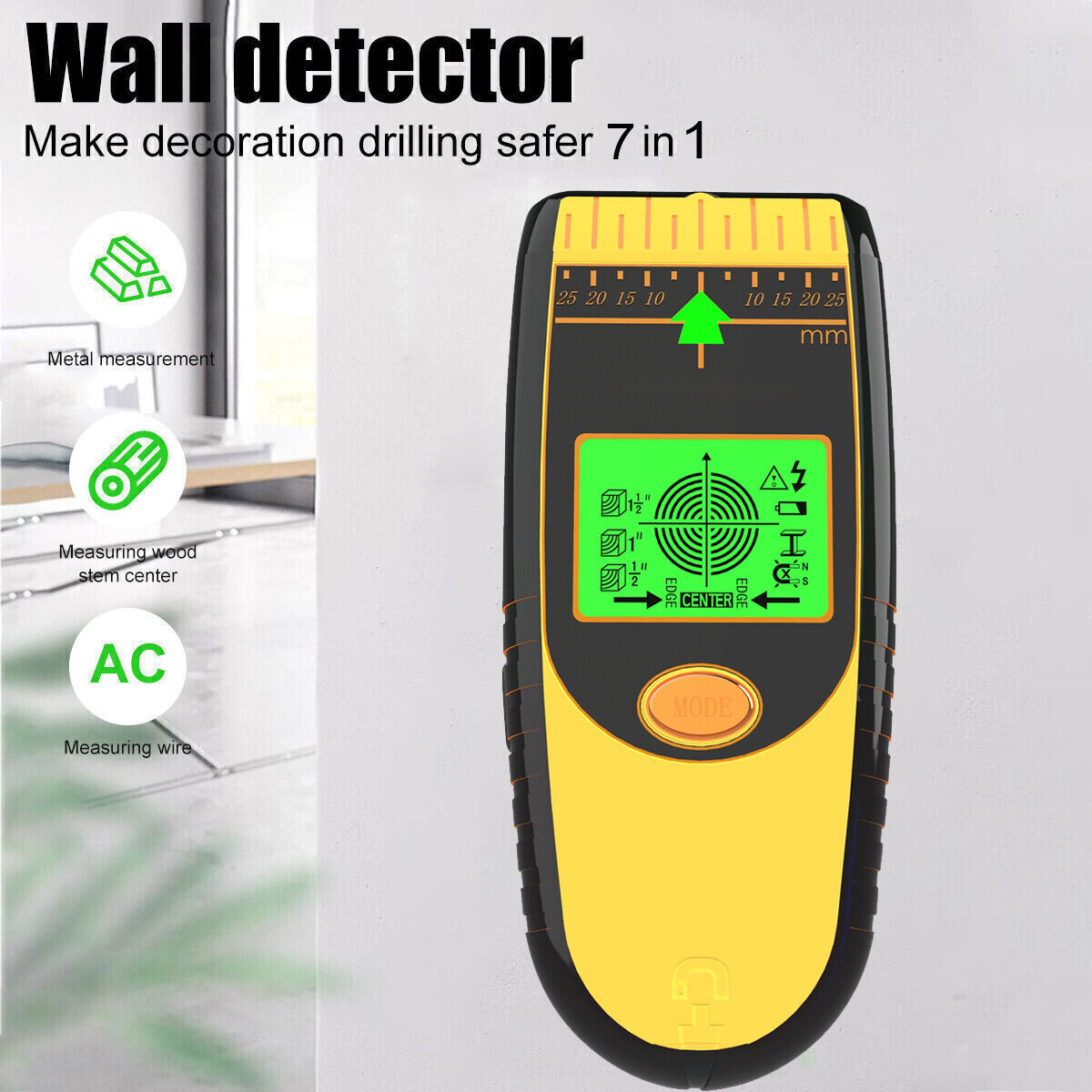 Stud Finder Wall Scanner - 7 in 1 Electronic Stud Detector with LCD Wood AC Wire
