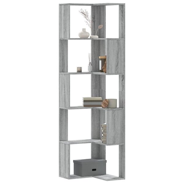 vidaXL Bokhylla hörn 5 hyllplan grå sonoma 50x50x179cm konstruerat trä