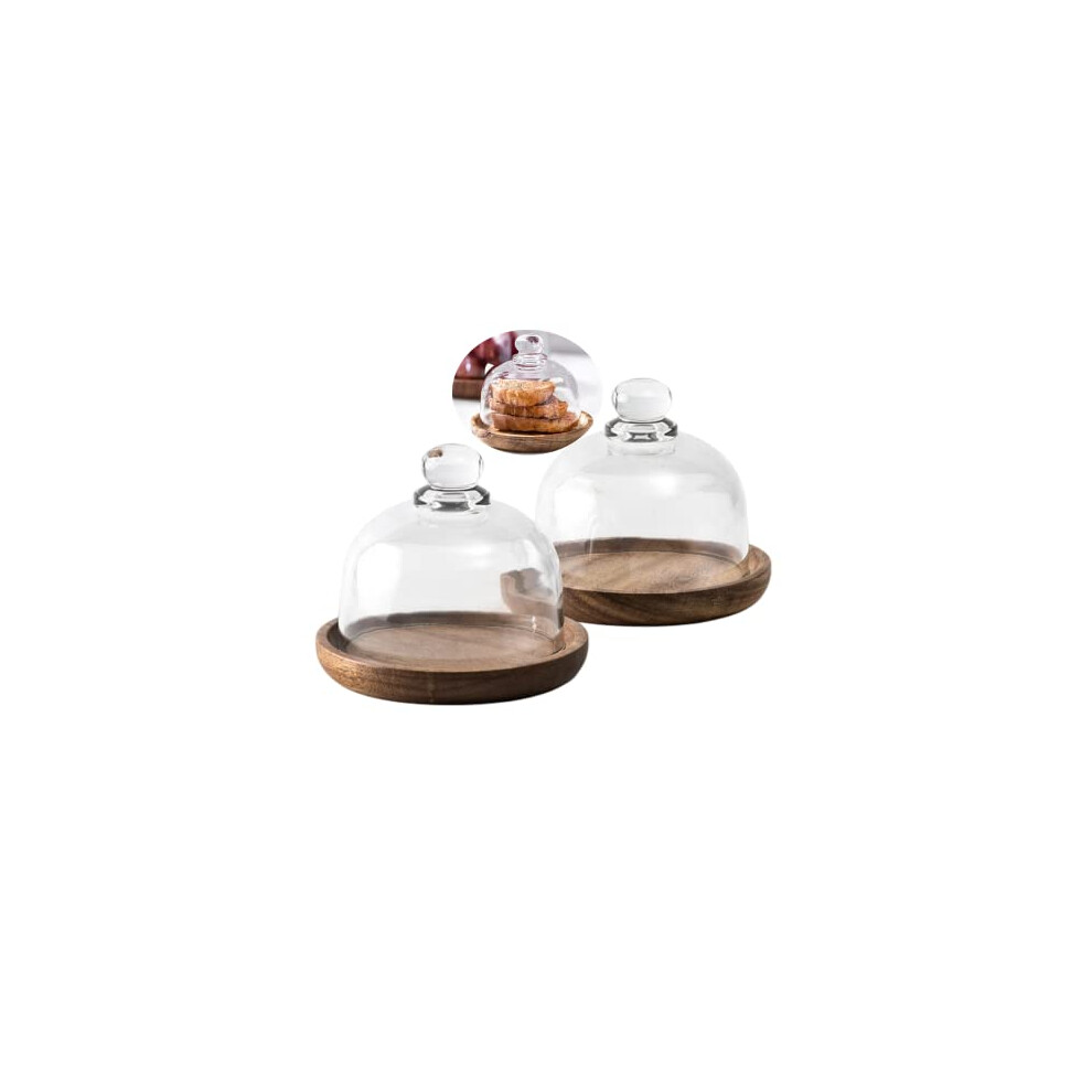 2 Sets Mini Cake Stand,Cake Plate Server Platter with Dome,4" Wood Cake Stand with 3.25" Glass Dome Cover,Cupcake Display Plate with Lid,Cake Holder