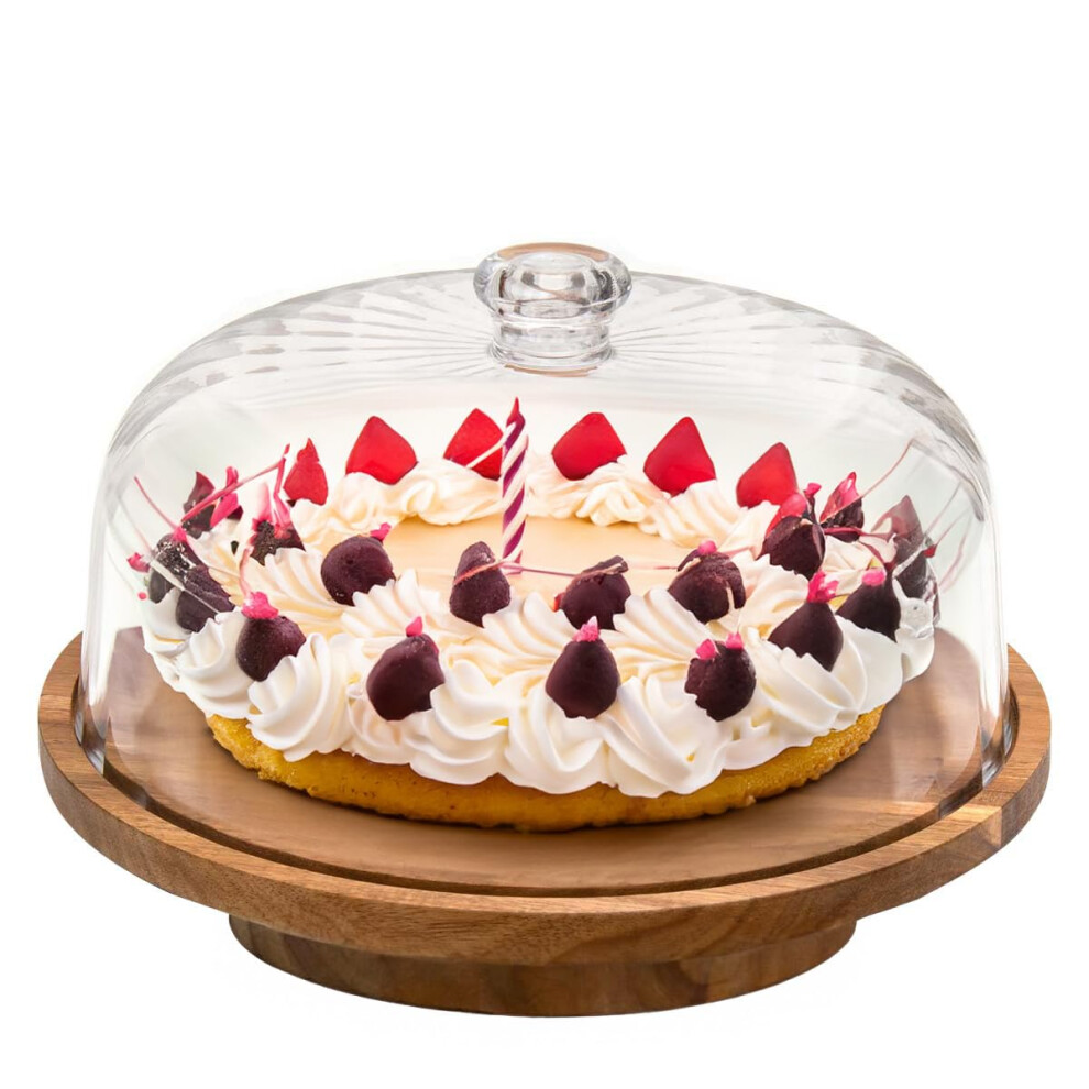 Cake Stand with Dome Lid - 12" Non-Slip Acacia Wood Cake Stand with Clear Acryl