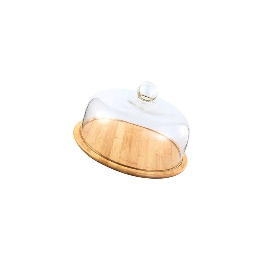 ZIUBMVDYC Glass Dome, Wood Cake Stand with Chocolate Cupcake Candy Display Plate Salad Bowl Snack Tray Serving Platter 22cm