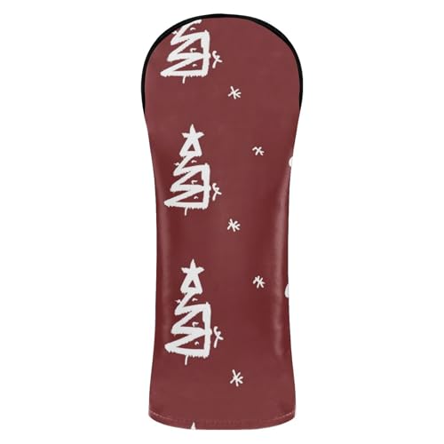 Golf Head Cover Set Headcovers with Number Tag for Fairway Wood Hybrid Christmas Tree Doodles Dark Red