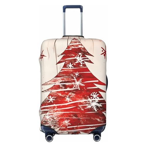 asbwuo Red Wood Grain Christmas Tree Suitcase Cover, Protector for Travel Double-Sided Graphic Print Elastic Luggage Cover (for 25-28 Inch Luggage)
