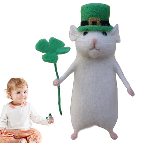 Handmade Wool Felt - DIY Material Kit Unfinished Cat Fox Wool Needle, Cute Wood Wood Christmas Tree Wreath Decor - Mouse Needle Felt Made