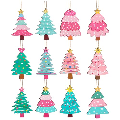 MHADBKH 12pcs Wood Pendant Christmas Tree Ornament for Nativity Scene Display Handmade Wall Hanging Decoration