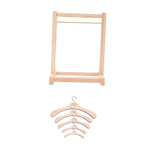 GARVALON Wooden Doll Clothes Hanger Rack Set Natural Wood Doll Coat Dress Support Smooth Polished Surface Practical Miniature Clothing Organizer for Dollhouses and Rooms Included