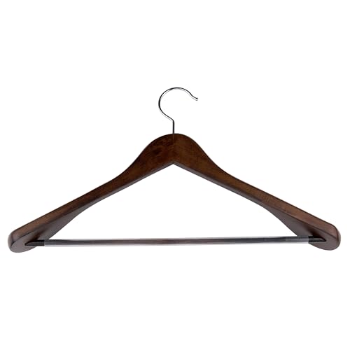 alpina Wooden Clothes Hanger - 1 Piece Clothing Hanger - with Wide Shoulders and Anti-Slip - 44 x 23.5 x 5.8 CM - Suitable for 2 Garments - Clothing Organizer - Wood - Brown