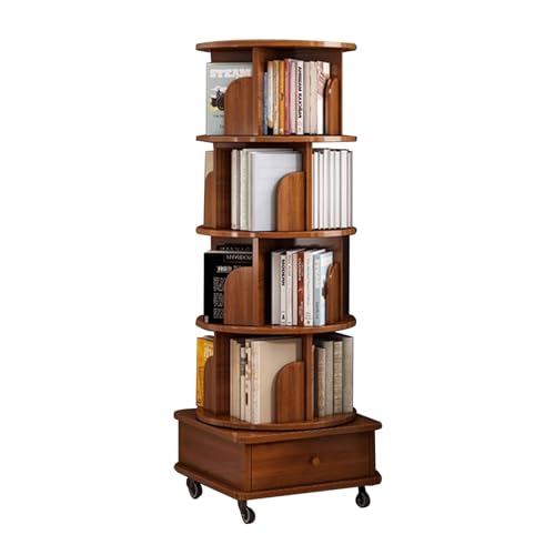 AKALNNB 360 Rotating Bookshelf,5-Tier Revolving CD Rack Solid Wood Corner Shelf, Rack Standing Shelves with Open Design for Bedrooms Living Rooms Game Rooms