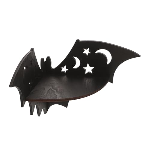 BESTYASH Bat Shaped Wood Floating Corner Shelf Wall Mounted Display Shelf for Bedroom Kitchen Bathroom Hollow Creative Spiderweb Design Storage Organizer for Home Office