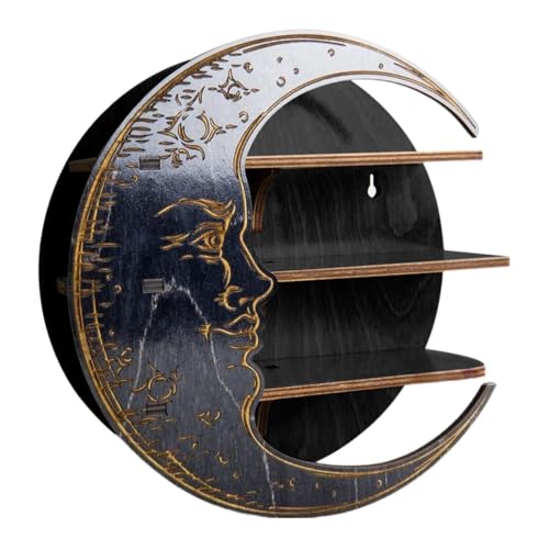 Moon Shaped Wood Corner Shelf - Floating Wall Shelf | Elegant Floating Shelf for Living Room, Bedroom and Bathroom | Space Saving Storage with Design