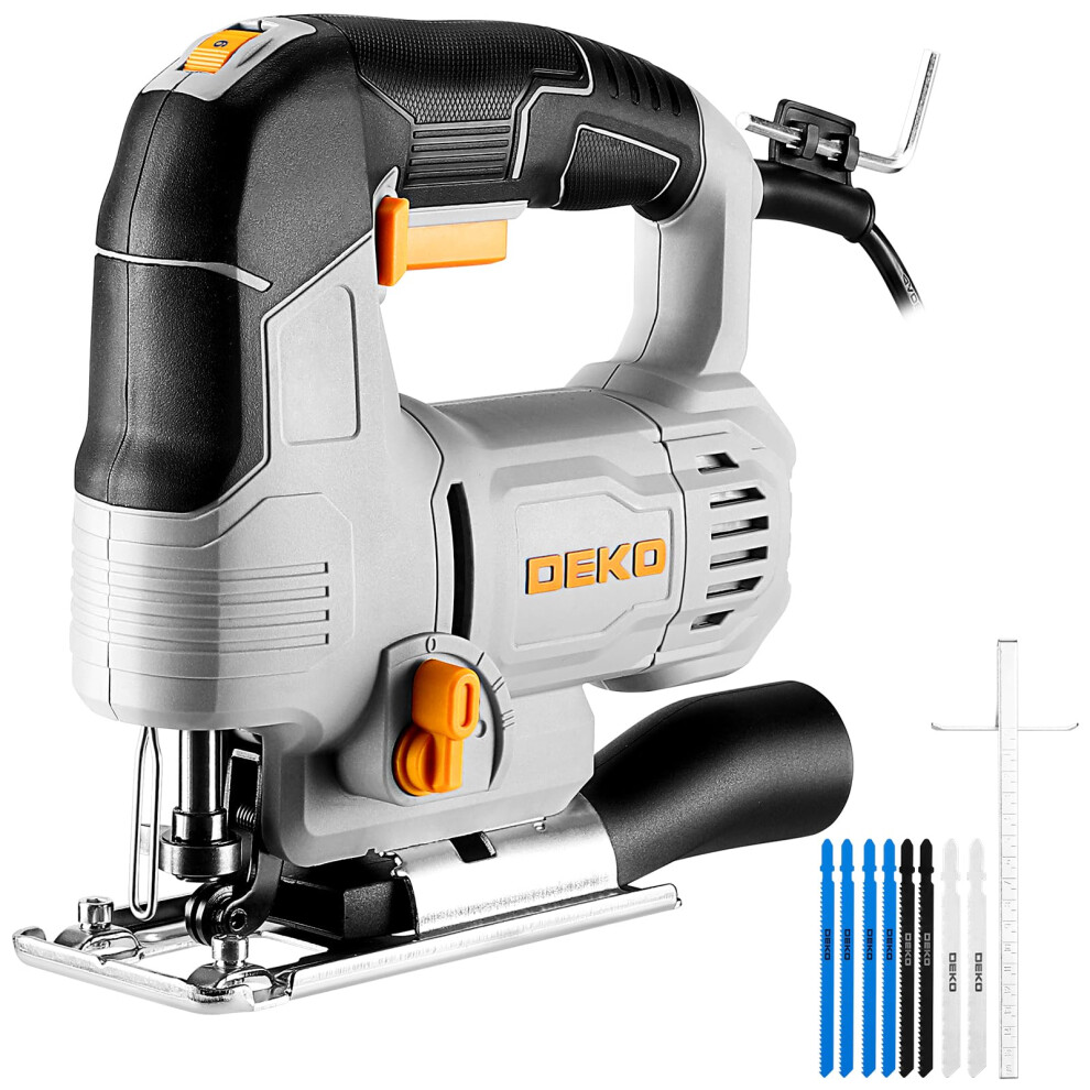 Electric Jigsaw Tool: DEKOPRO 400W Power Jig Saws Jigsaws Wood Cutter Machine, 6 Variable Speed 0-3000 SPM, 45Bevel Cutting Cut Blades, with 8 PCS