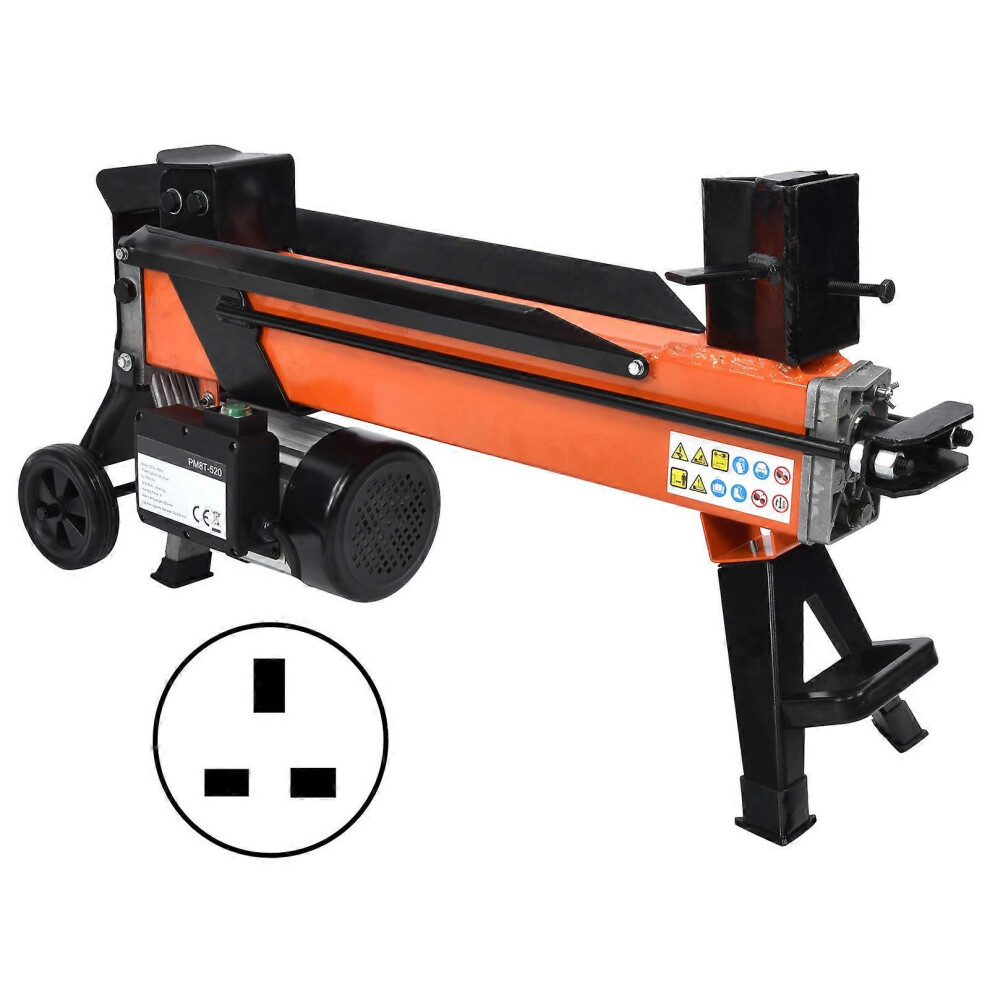 (As show, One size) Electric Log Splitter 8 Tons Hydraulic Mobile Wood Cutter Cutting Machine OrangeUK Plug 220V