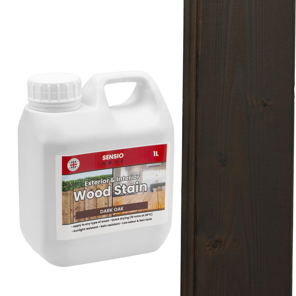 Sensio Home Dark Oak Wood Stain Big Value 1L Size Water Based Non Toxic Environmentally Friendly Wood Dye Indoor and Outdoor Furniture Wood Timber Skirting Doors Fence
