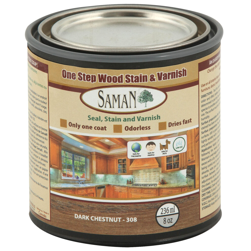 SamaN Interior One Step Wood Seal Stain and Varnish - Oil Based Odorless Dye - Protection for Furniture and Fine Wood (Dark Chestnut SAM-308 8 oz)
