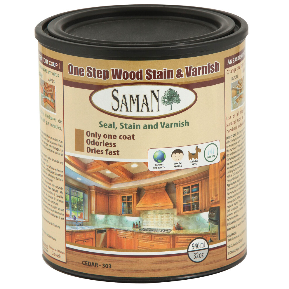 SamaN Interior One Step Wood Seal Stain and Varnish - Oil Based Odorless Dye - Protection for Furniture and Fine Wood (Cedar SAM-303 32 oz)