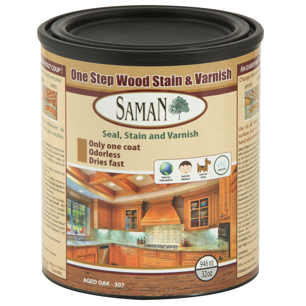 SamaN Interior One Step Wood Seal Stain and Varnish - Oil Based Odorless Dye - Protection for Furniture and Fine Wood (Aged Oak SAM-307 32 oz)