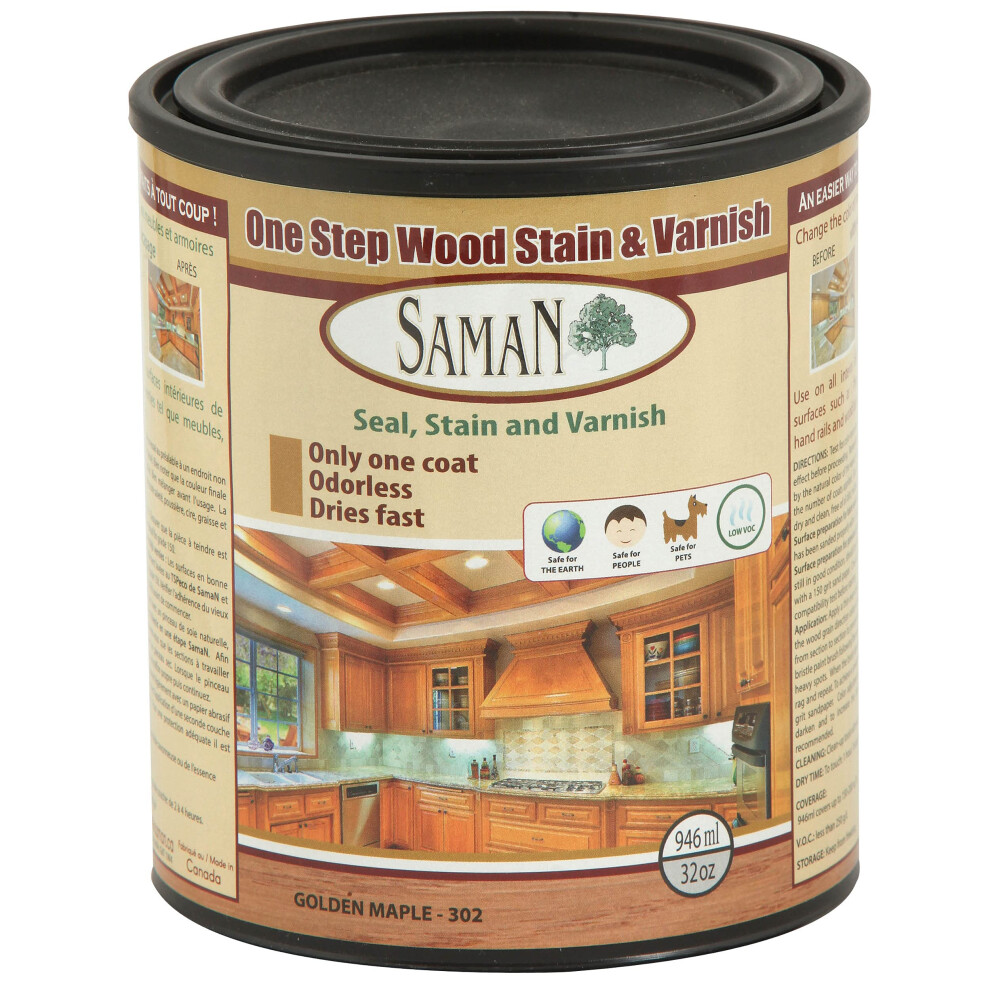 SamaN Interior One Step Wood Seal Stain and Varnish - Oil Based Odorless Dye - Protection for Furniture and Fine Wood (Golden Maple SAM-302 32 oz)