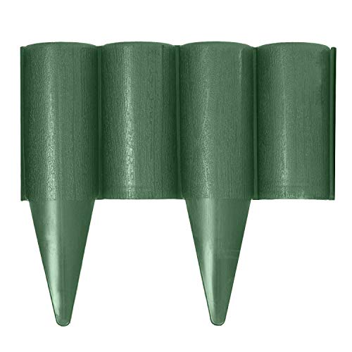 Green Lawn Edging Border Palisade - 2.5 metres / 8.2 ft Long - Garden Fencing with Wood Log Texture and Ground Stakes for Landscaping, Flower Beds, Patio, Lawn, Pavement Edge