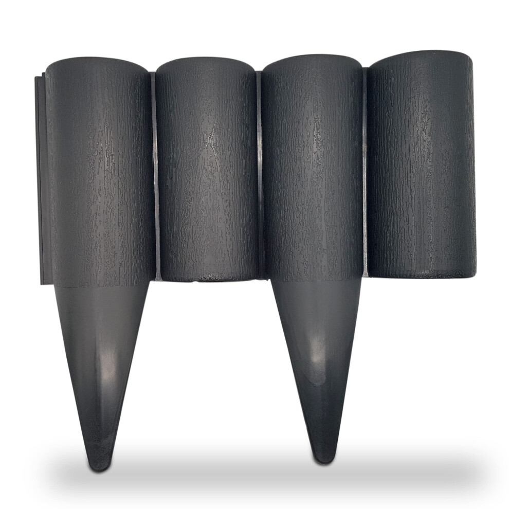 Anthracite Grey Lawn Edging Border - 2.26 m / 7.4 ft Long Garden Palisade with Wood Bark Effect - Fencing with Ground Stakes - Perfect for Flower Beds, Lawn, Patio, Pavement