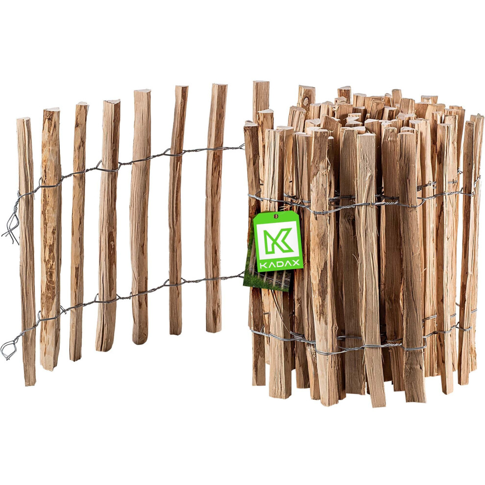 KADAX Wooden Picket Fence, Rustic Enclosure in Various Sizes, Weatherproof Fencing Roll Made of Natural Hazel Wood for Garden Edging (7-9 cm, 50 x 500