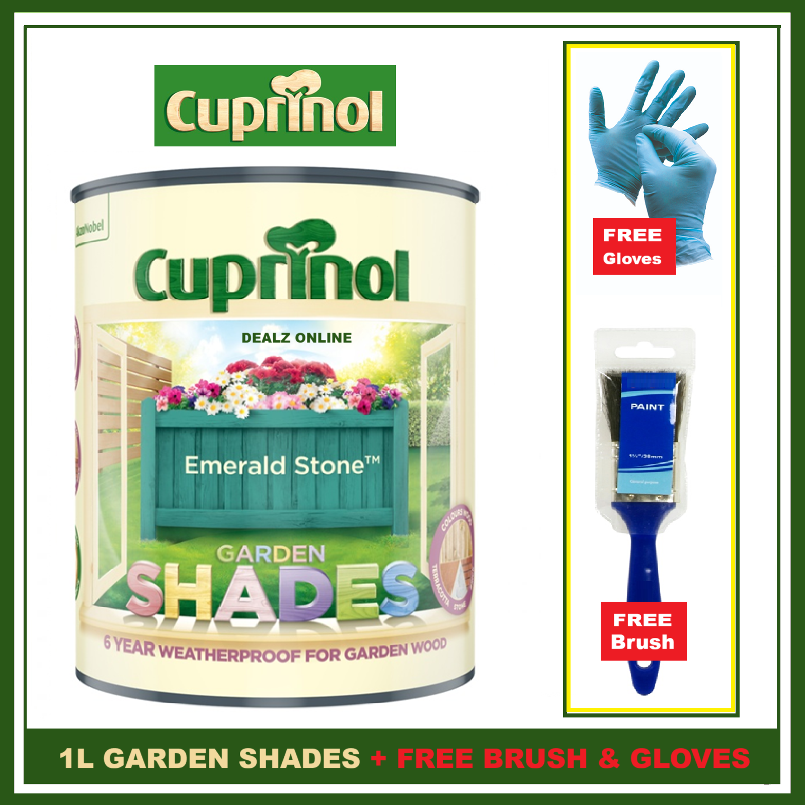 Cuprinol EMERALD STONE Garden Furniture Sheds Wood Paint + FREE BRUSH &
