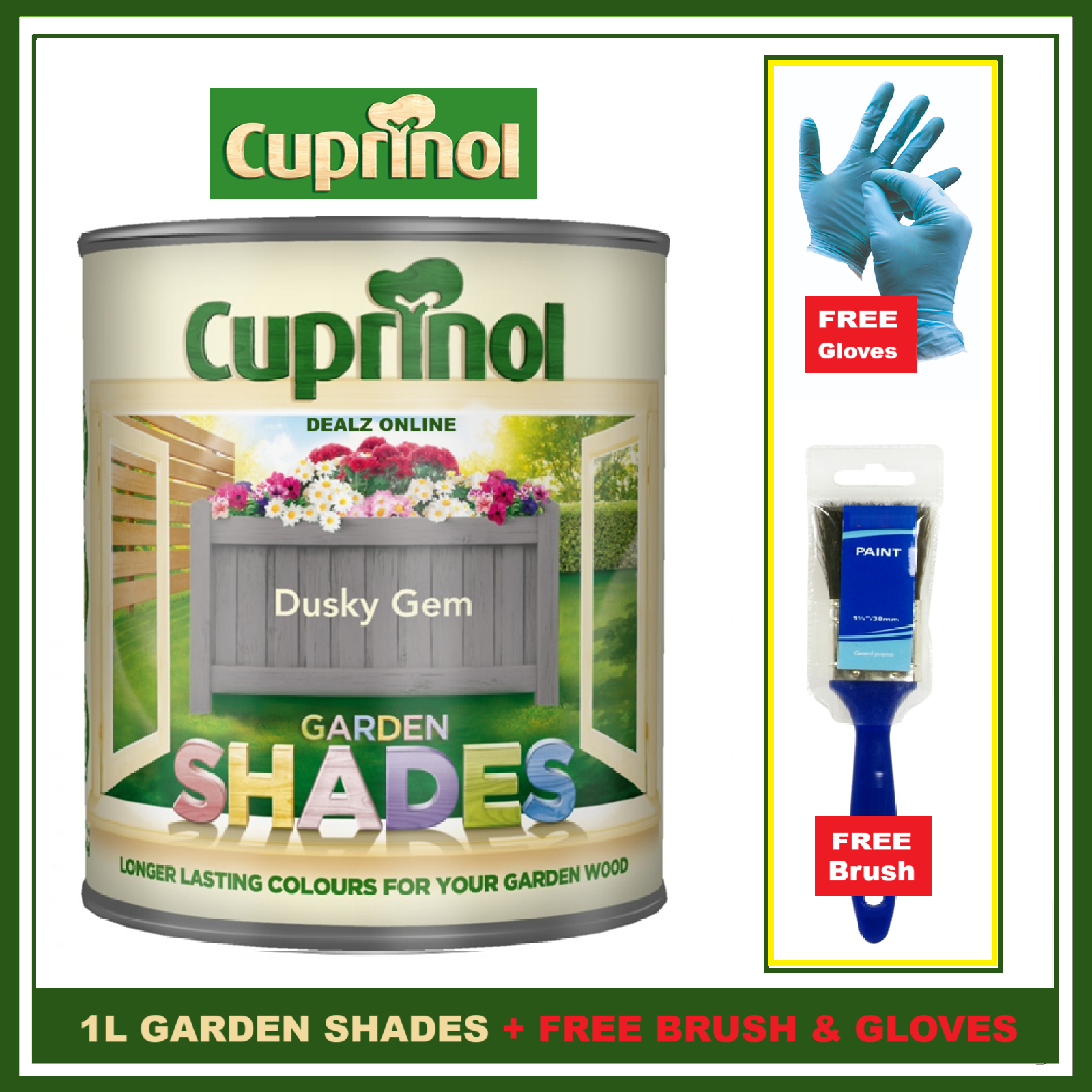 Cuprinol DUSKY GEM Garden Furniture Sheds Wood Paint + FREE BRUSH &