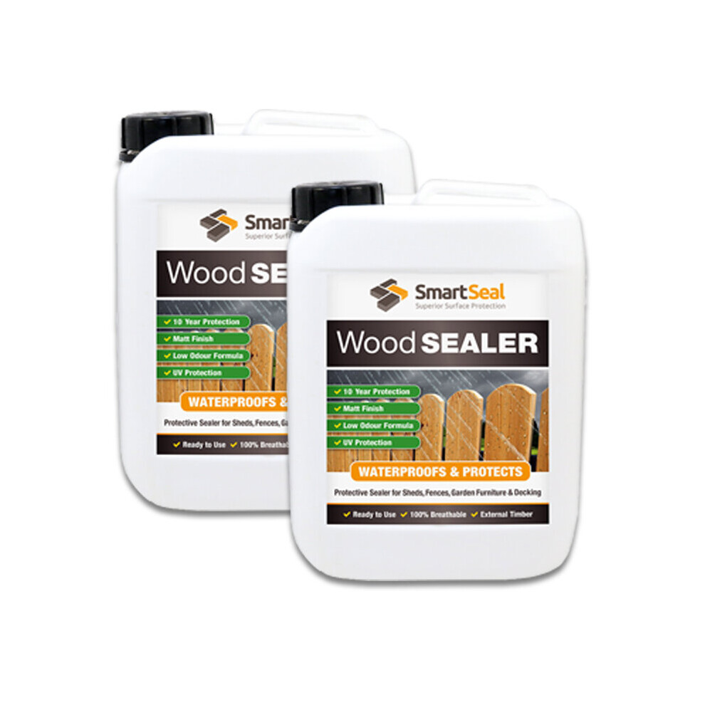 (2 x 5 Litres) Wood Sealer For Sheds Fence Garden Rooms & Furniture Clear Finish Protects 10+ yrs