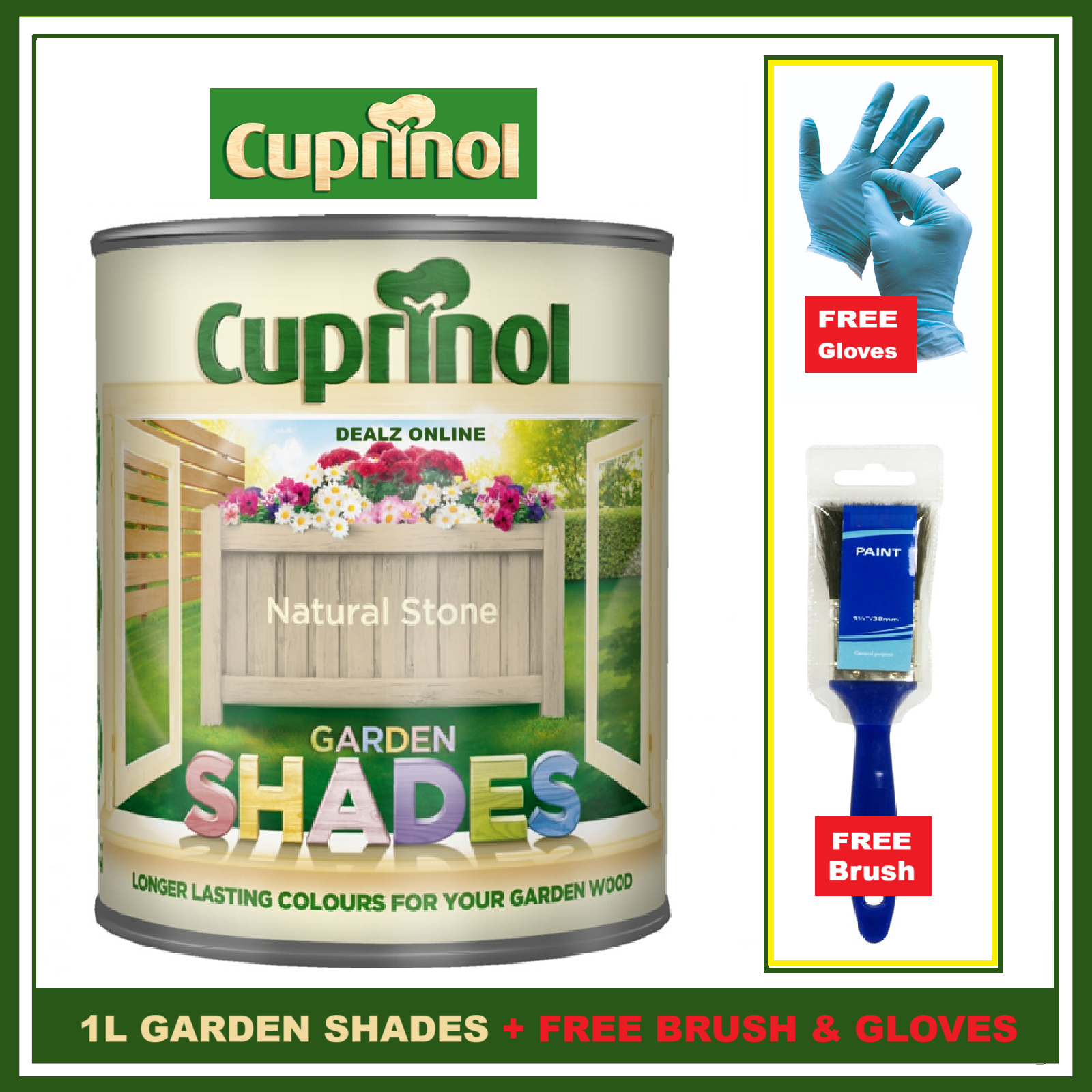 Cuprinol NATURAL STONE Garden Furniture Sheds Wood Paint + FREE BRUSH &