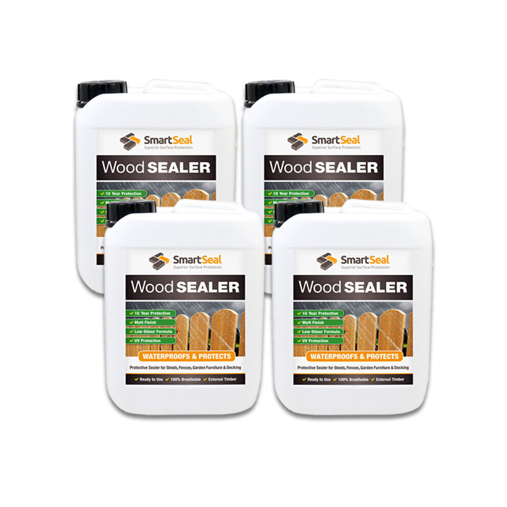 (4 x 5 Litres) Wood Sealer For Sheds Fence Garden Rooms & Furniture Clear Finish Protects 10+ yrs