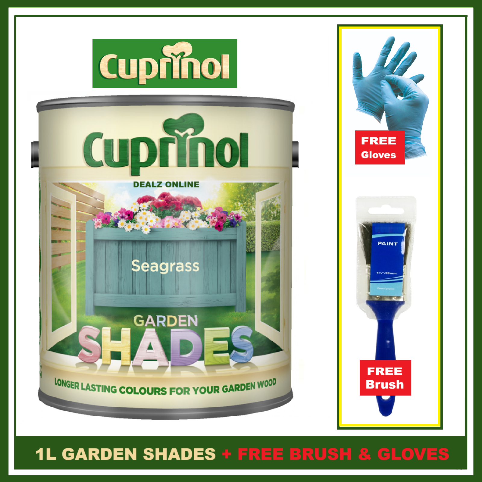 Cuprinol SEASGRASS 1L Garden Shades Furniture Sheds Wood Paint + FREE BRUSH &