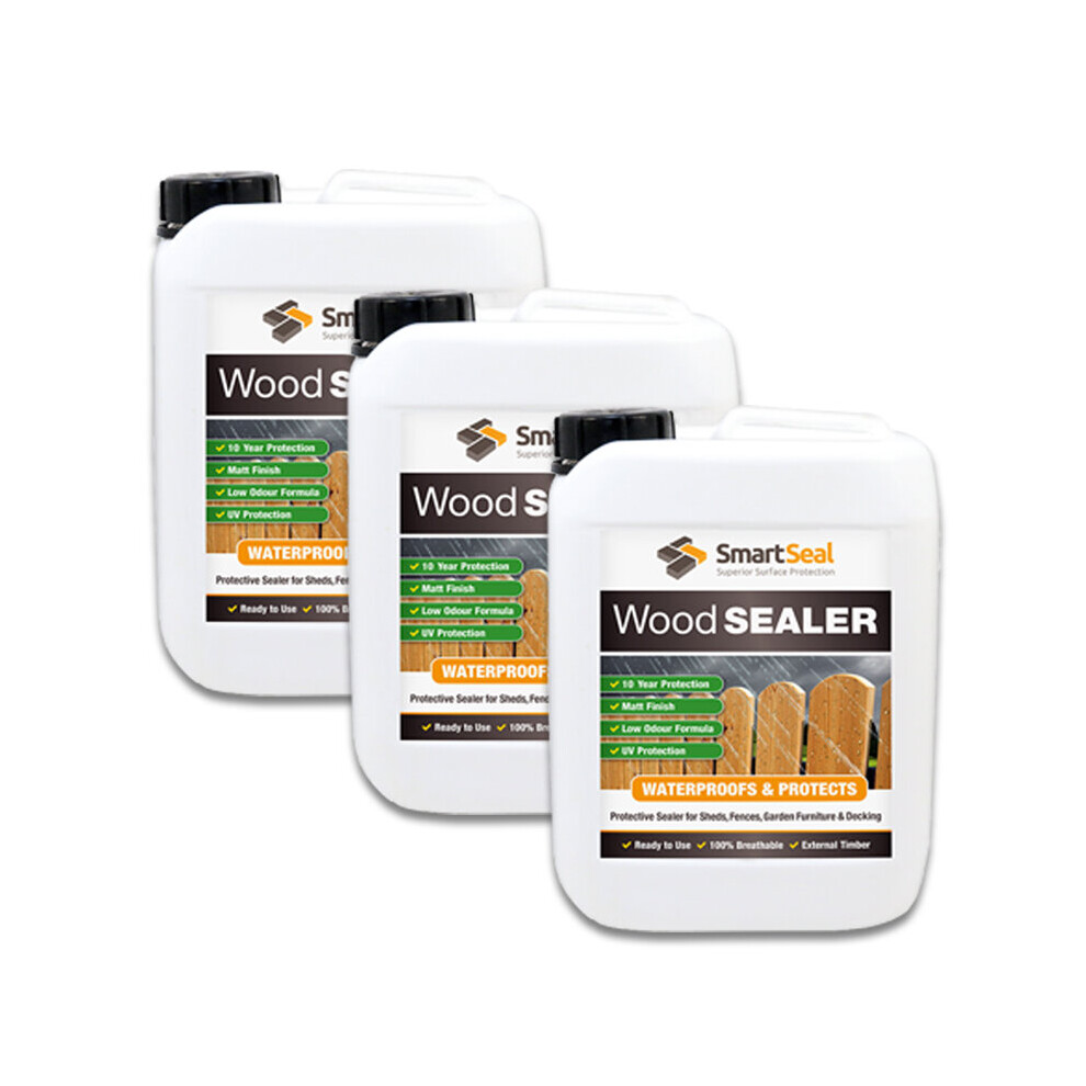 (3 x 5 Litres) Wood Sealer For Sheds Fence Garden Rooms & Furniture Clear Finish Protects 10+ yrs