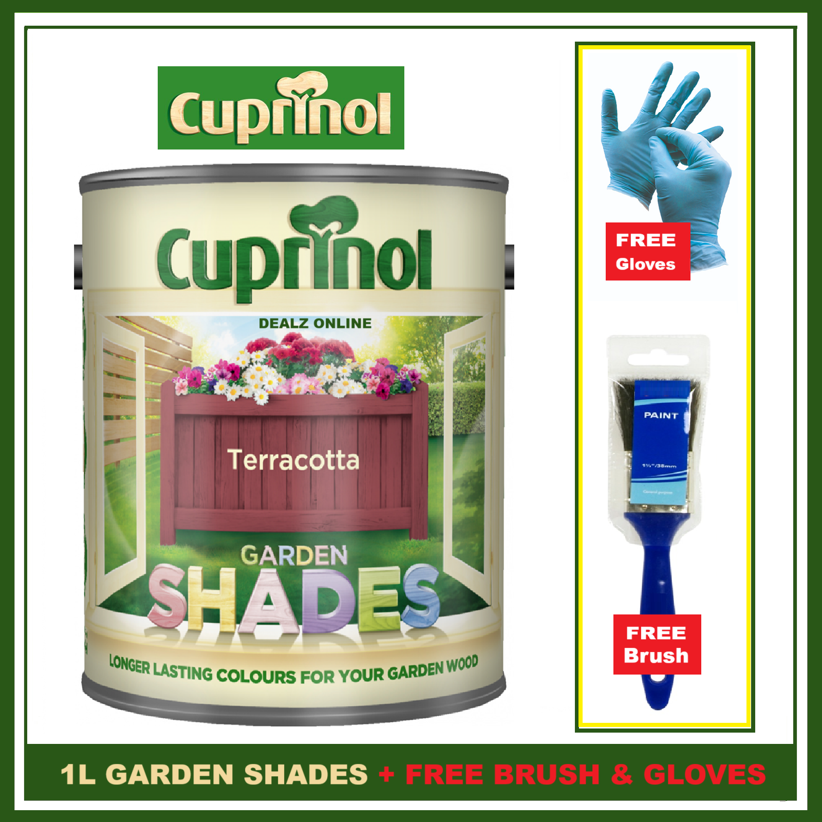 Cuprinol TERRACOTTA 1L Garden Shades Furniture Sheds Wood Paint FREE BRUSH &
