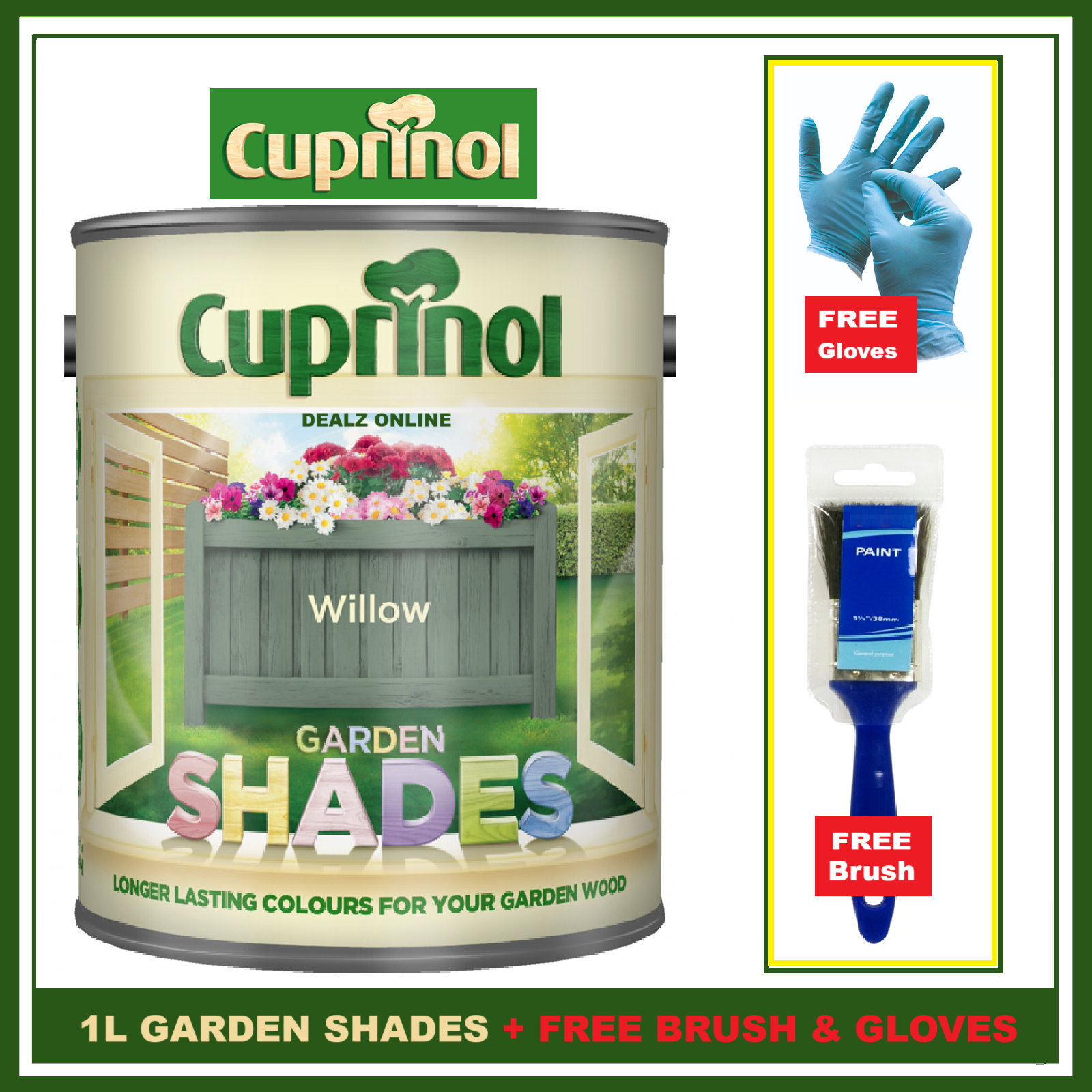Cuprinol WILLOW 1L Garden Shades Furniture Sheds Wood Paint + FREE BRUSH &