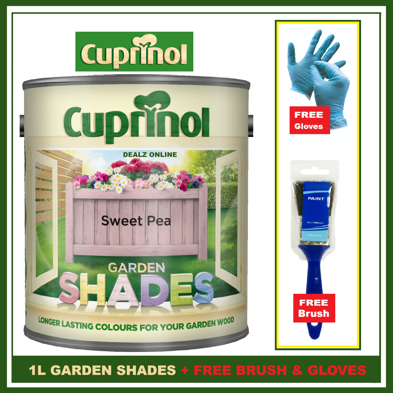 Cuprinol SWEET PEA 1L Garden Shades Furniture Sheds Wood Paint FREE BRUSH &