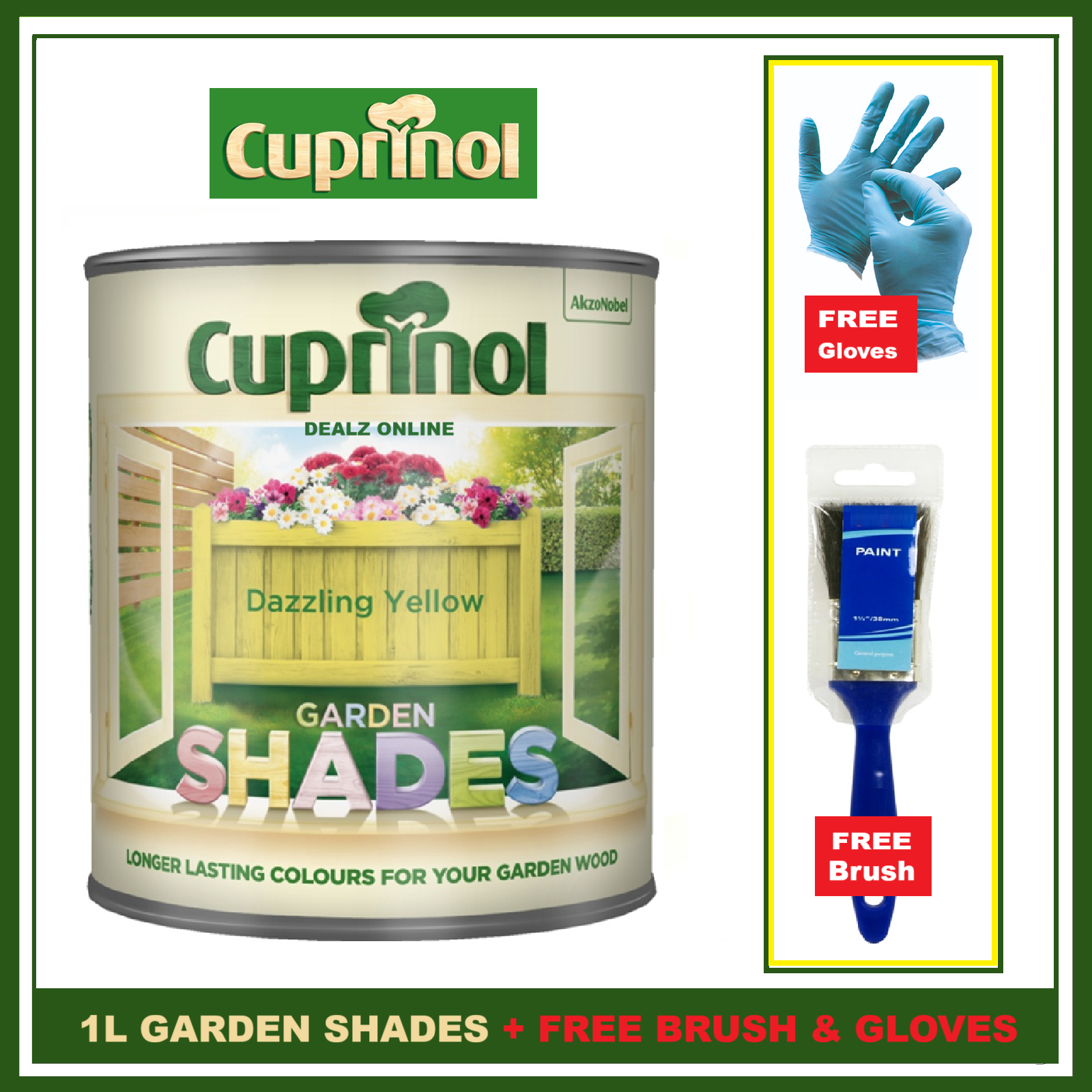 Cuprinol DAZZLING YELLLOW Garden Furniture Sheds Wood Paint + FREE BRUSH &