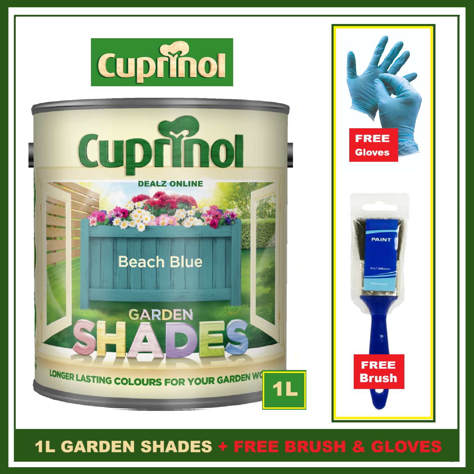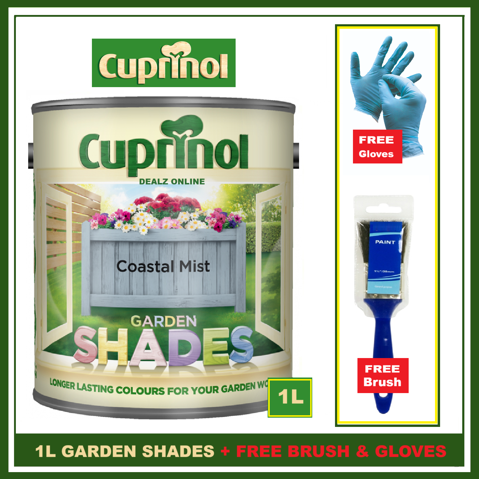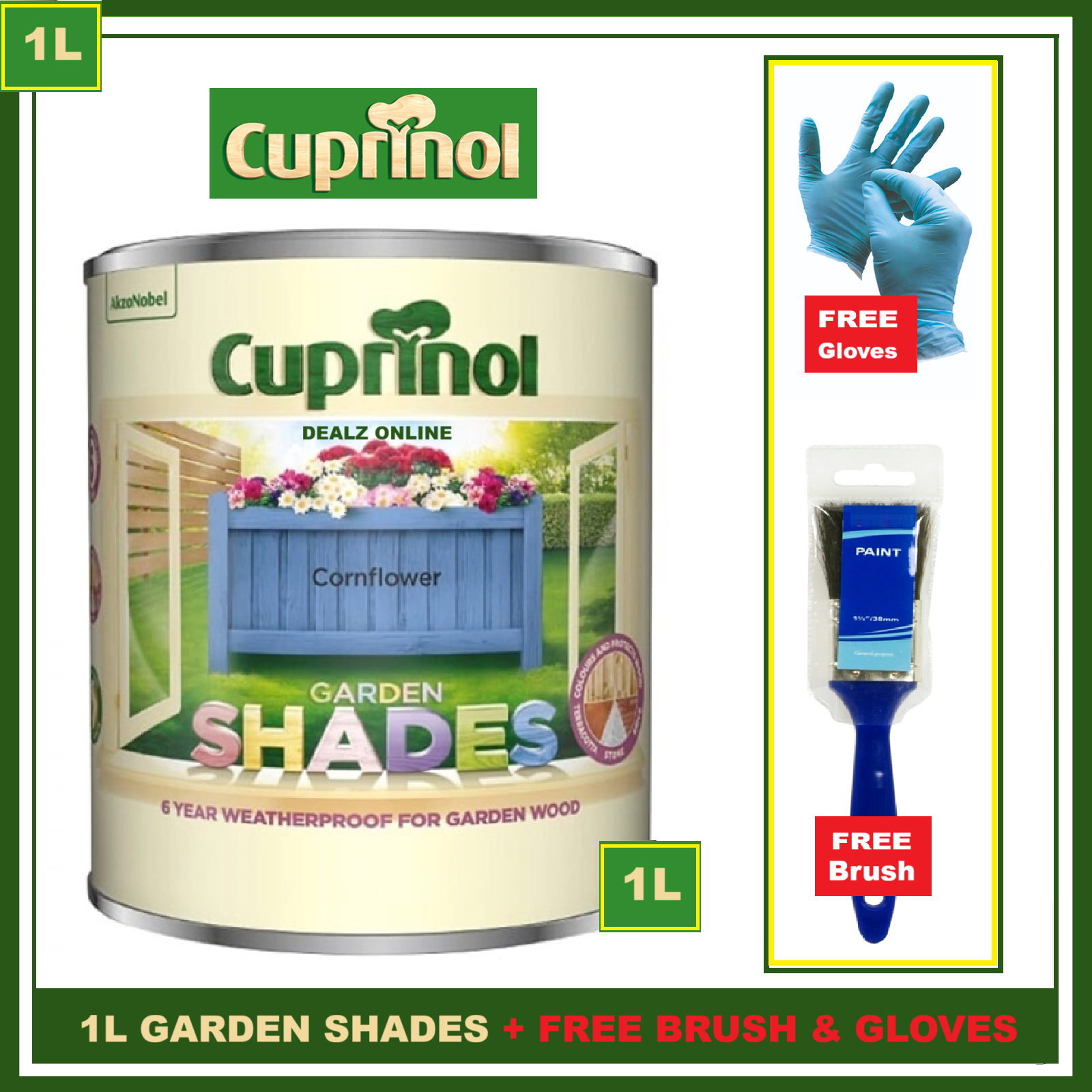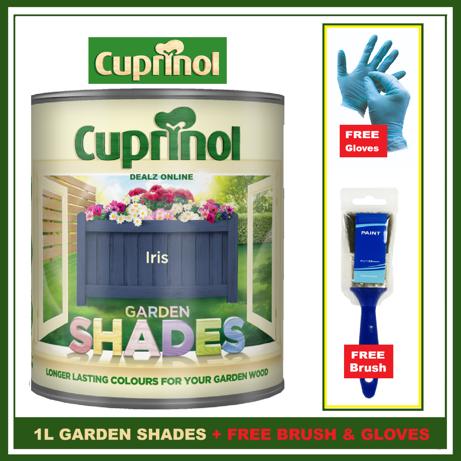 Cuprinol IRIS 1L Garden Shades Furniture Sheds Wood Paint + FREE BRUSH &